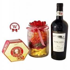 This gift wishes the recipient a long, healthy, and tasty life. It includes two wines, a gift basket, chocolates, and tasty nuts, making it an excellent choice since they can enjoy it alone or share it with friends and colleagues.