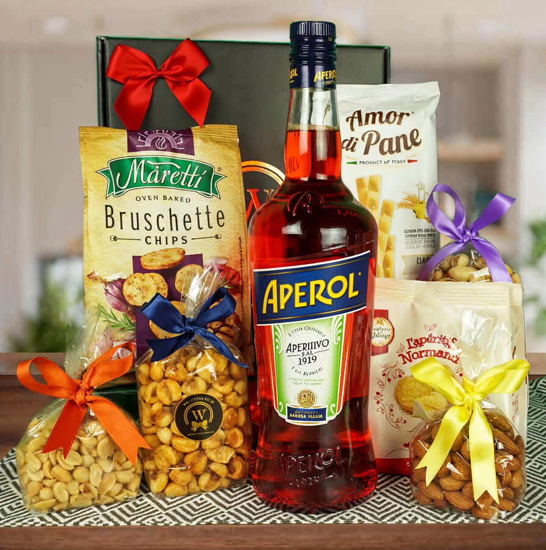Savor the vibrant flavors of Italy with our “Aperol Delight” gift set. Enjoy the refreshing taste of Aperol, perfectly complemented by a selection of irresistible snacks. Indulge in the rich and nutty Pistacchio, Almonds, and Peanuts, and experience the spicy kick of Picant corn. Accompanying these delights are the crispy Salty Crackers, the crunchy Grissini, and the aromatic Bruschetta.