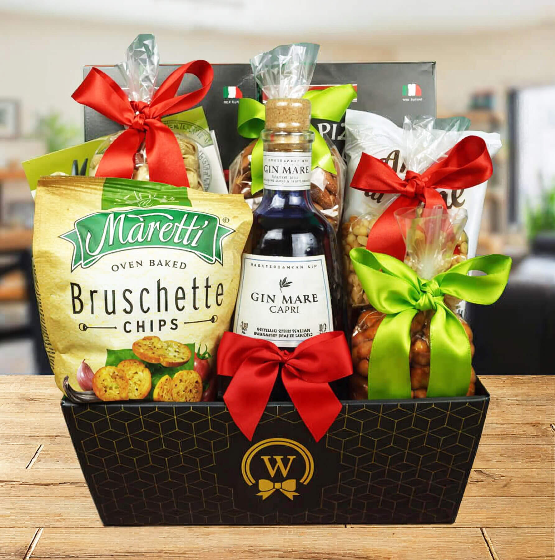 Paired with an array of Mediterranean-inspired snacks including crackers, pistachios, peanuts, almonds, picant corn, grissini, Greek olives, and bruschetta, each taste transports you to sun-drenched shores. Presented in our signature Walwater’s Gift Tray, it’s the perfect gift to evoke the spirit of Capri.
