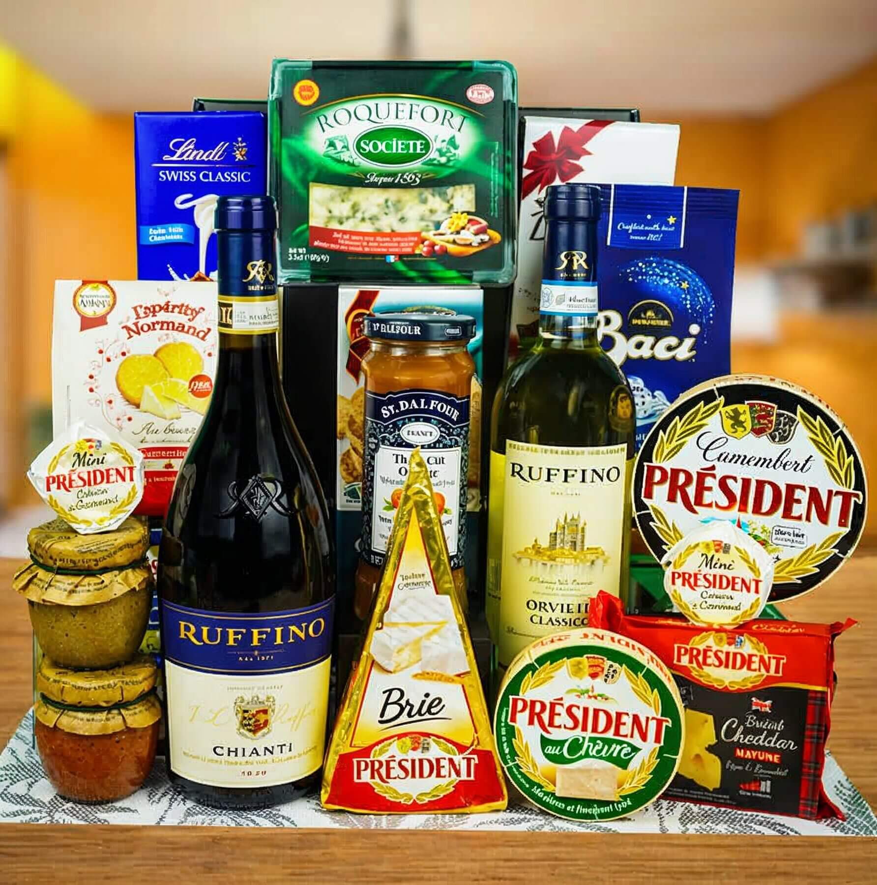 Complete with two Ruffino Italian Red & White wines. this exquisite arrangement makes a generous gift that is impossible to resist.