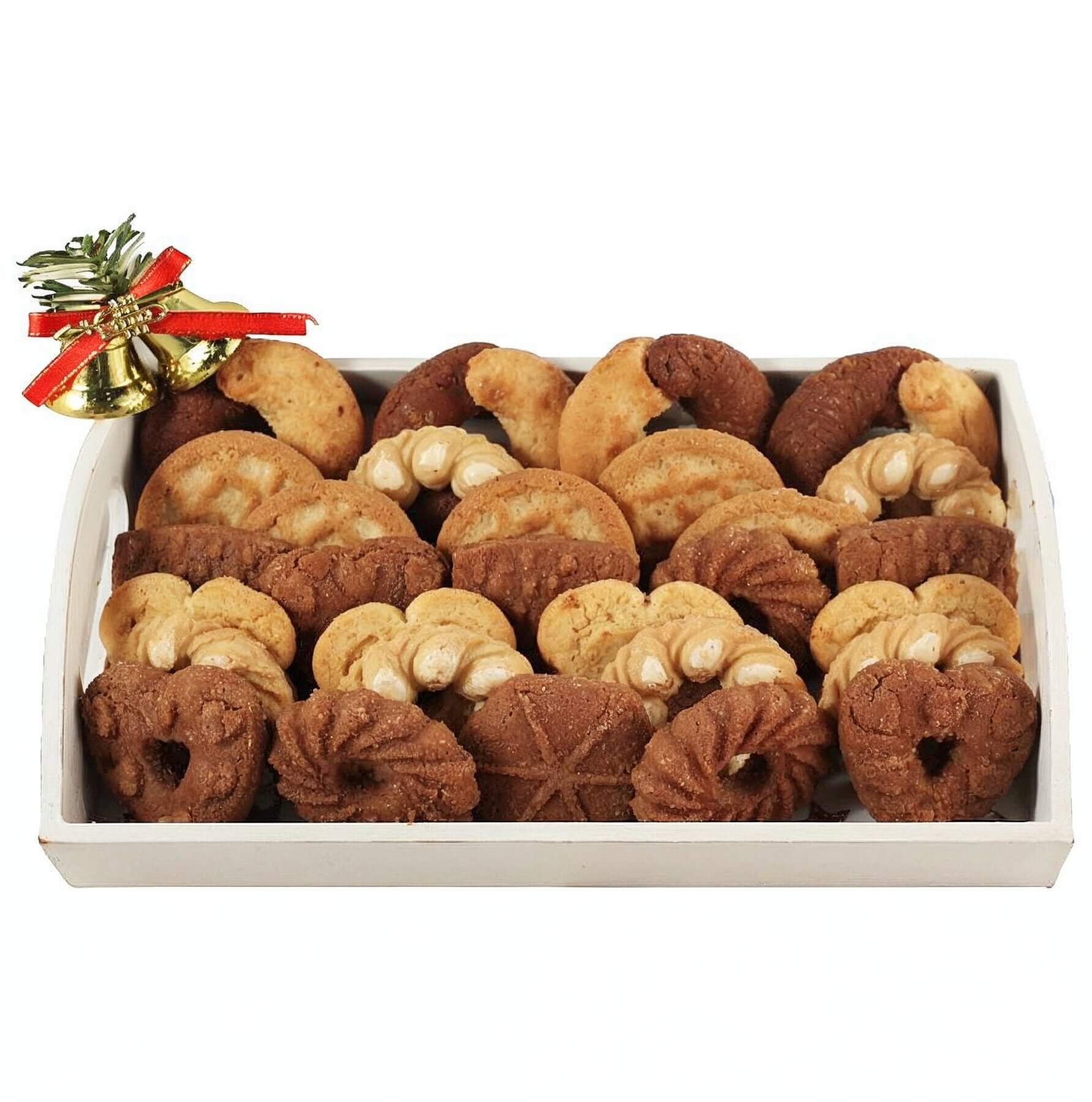 Surprise your friends, family, coworkers, employees, or clients with a wonderful 200g (7 oz) cookie selection designed with a Christmas tray.