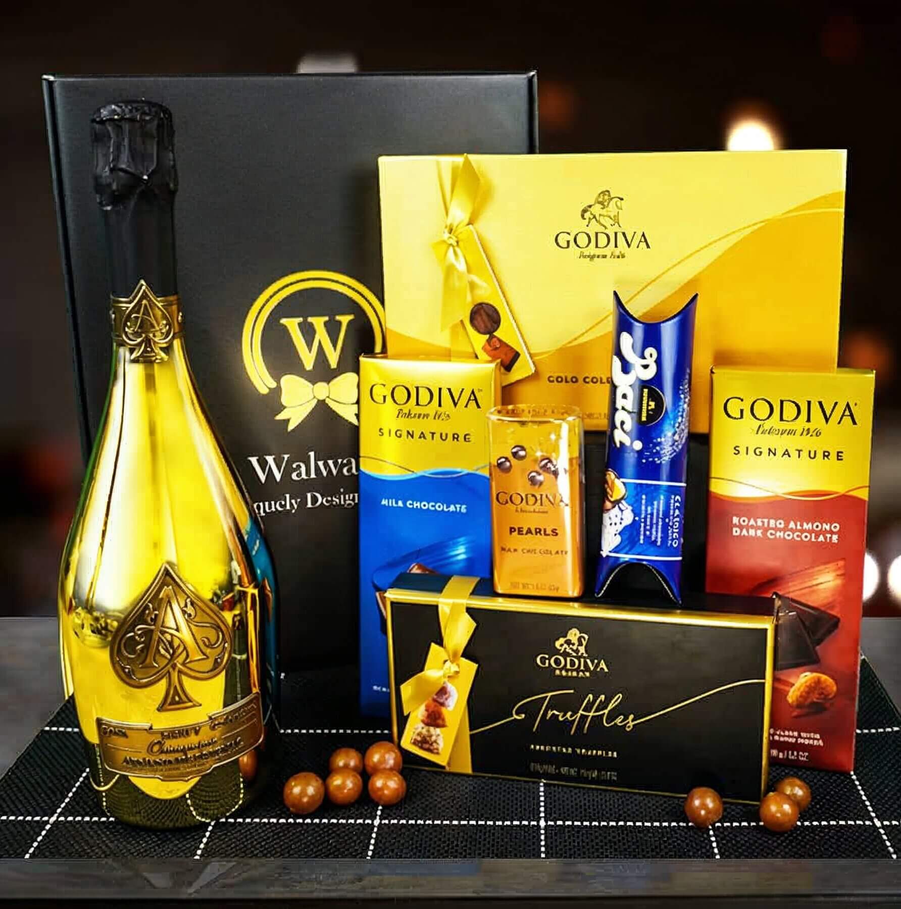 Looking for a gift for the chocolate lover in your life? We’ve got Godiva Gift Baskets with Armand de Brignac champagne that’ll tame that sweet tooth! You’re sure to find something to suit your taste among our large selection. A gift basket from Godiva or Armand de Brignac is the perfect gift for chocolate lovers. Do you know someone who needs some relaxation? One of our most popular holiday baskets is the Champagne Delight basket! Treat your clients and colleagues to an exceptional treat with Corporate Godiva Deluxe.