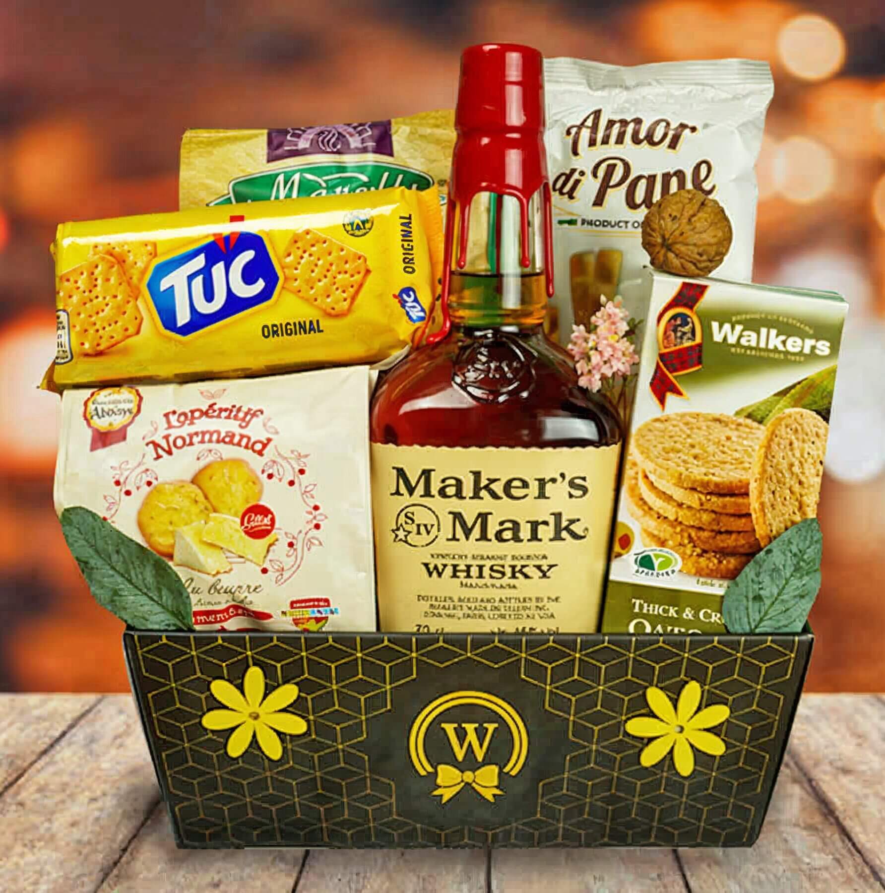 At its heart lies the esteemed Maker’s Mark Bourbon (700ml), renowned for its distinctive flavor and smoothness. Take pleasure in the luxurious Belgian Truffles and savor the rich delight of the Chocolate Bar. Delight in the artistry of the Bonbonniere and experience the delectable charm of Chocolate Bag.