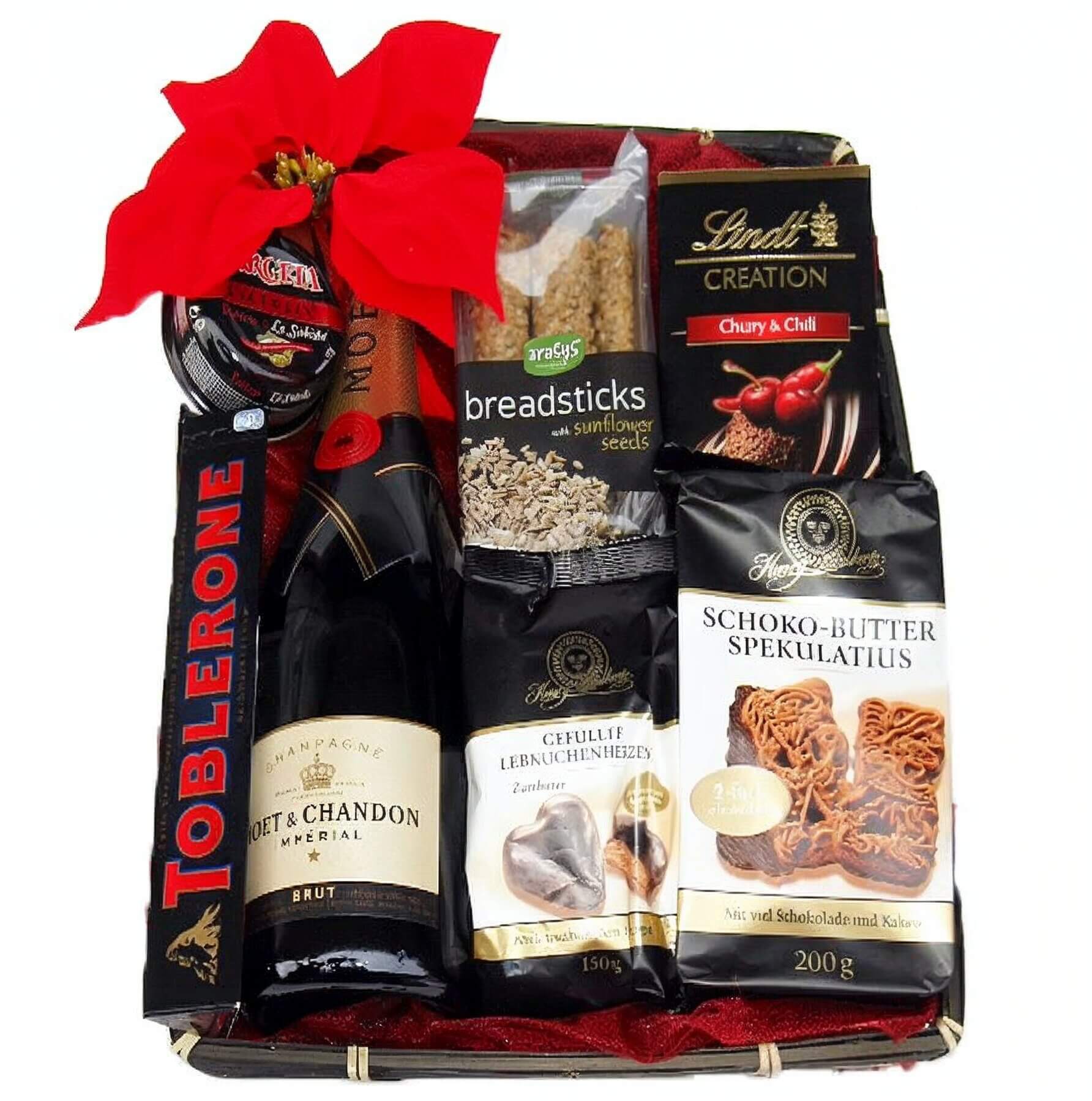Definitely only for those who appreciate good tastes good with everything from deer & Posta pistachio pate up to Moet imperial champagne. Your recipient will find that this treat basket just goes on and on long after the gift will be received.