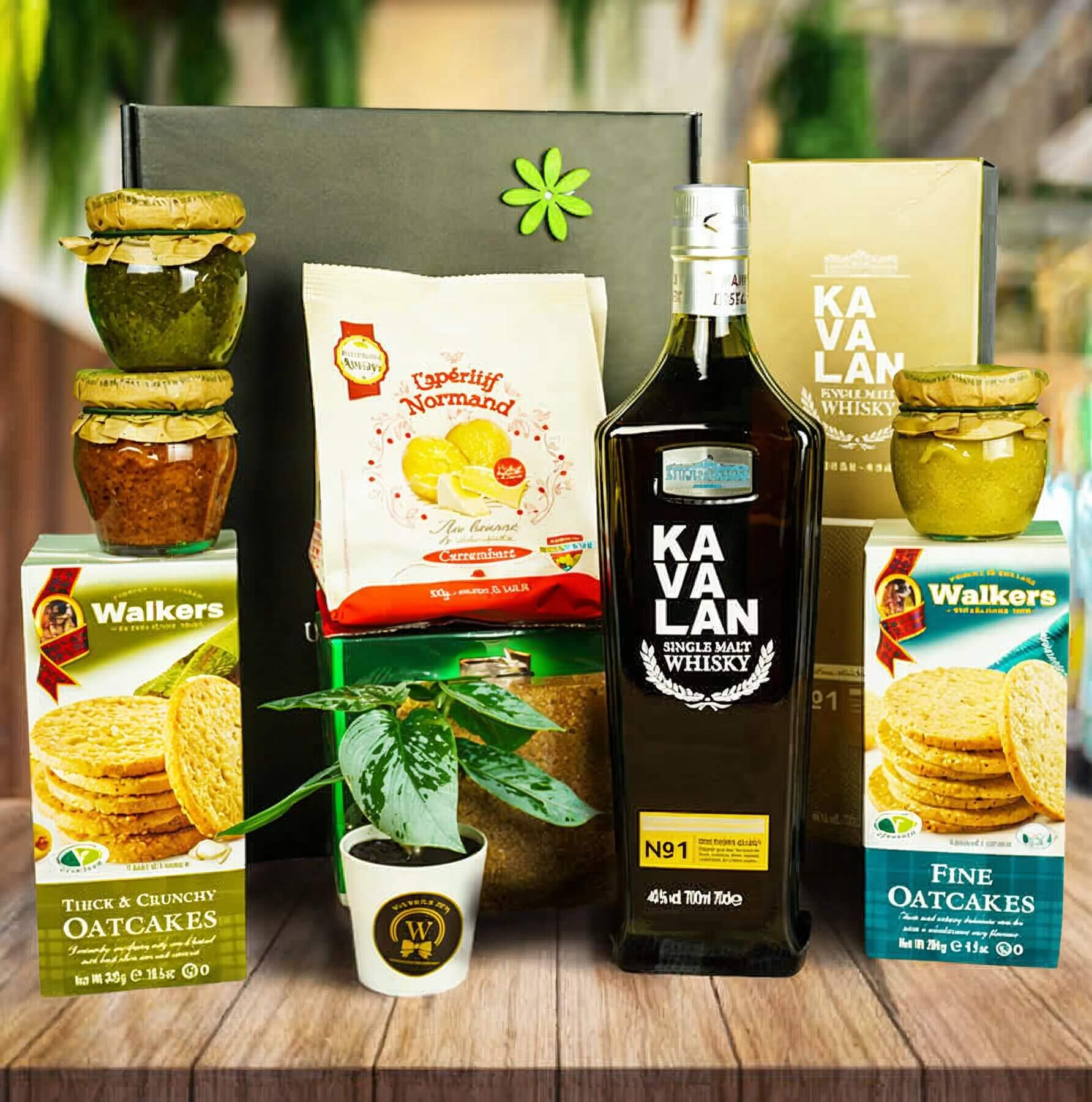 Embrace the smoothness of the Kavalan Distillery Select Single Malt Whisky, expertly crafted to perfection. Delight in the harmonious pairing of Belgian truffles, Walkers Shortbread, Baci chocolates, and decadent Belgian/Lindt chocolate bars. Savor the crunch of chocolate-coated peanuts/hazels and the tempting allure of chocolate sticks.